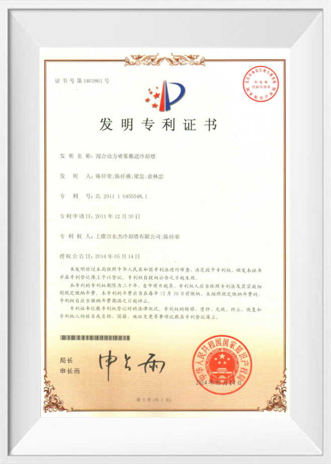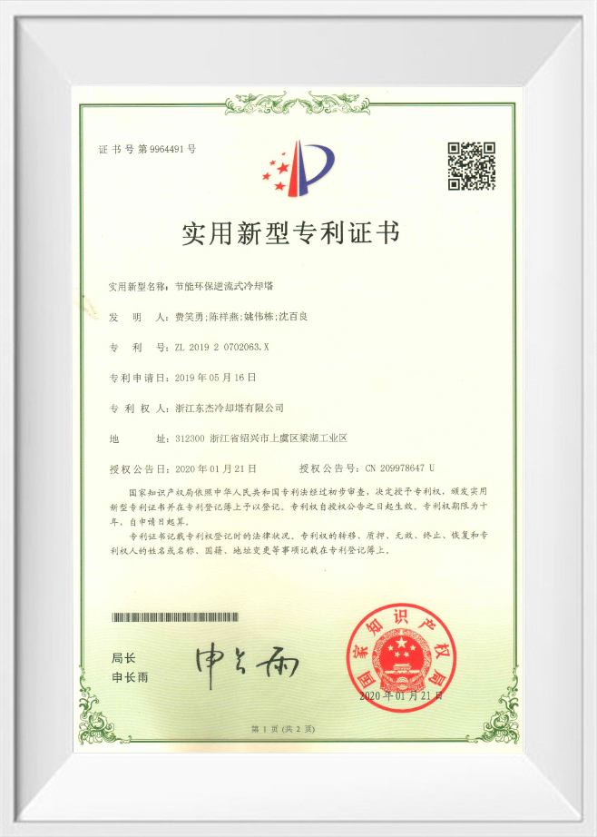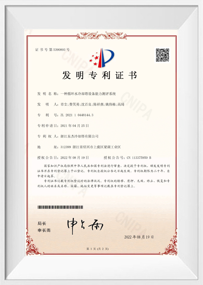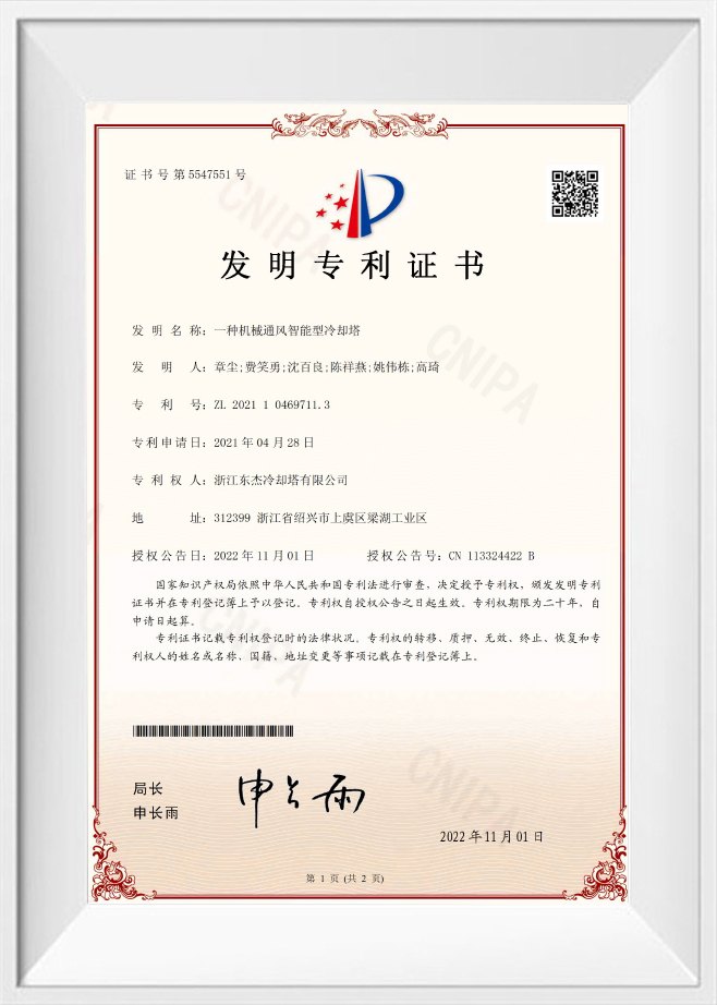 Патент на изобретение 2022 г.: интеллектуальная градирня с механической вентиляцией - 202110469711.3