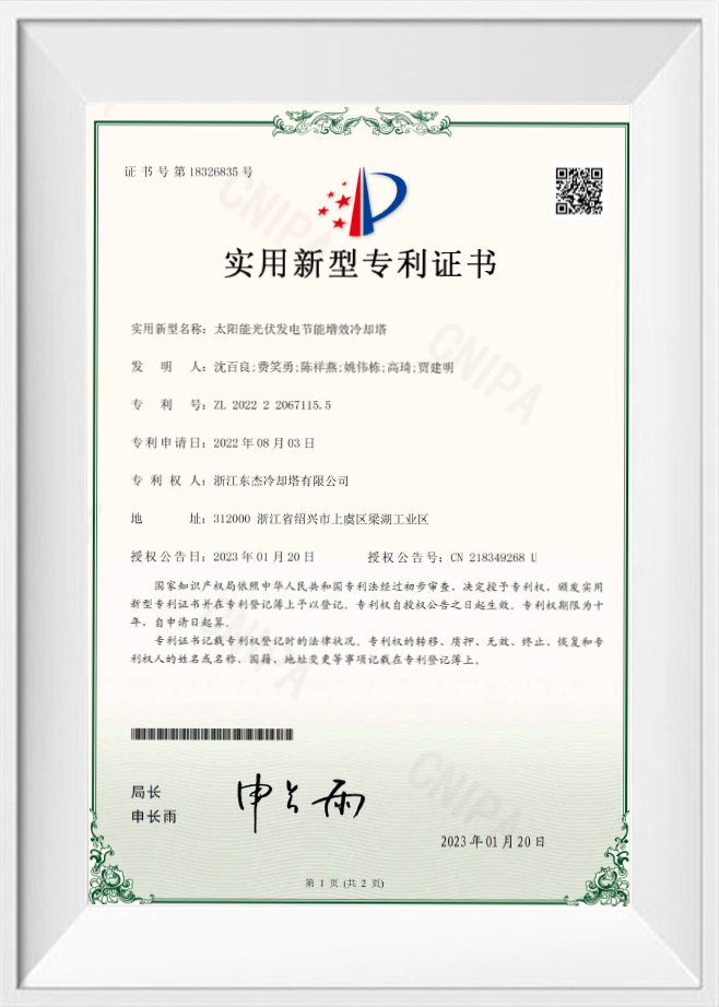 2023 Солнечная фотоэлектрическая генерация энергии Энергосберегающая и повышающая эффективность градирня 202222067115.5